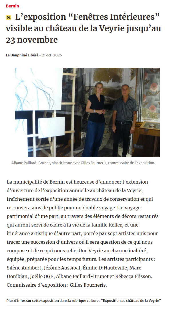 Lien pour acceder à la vidéo : https://c.ledauphine.com/culture-loisirs/2023/05/19/isere-a-bernin-une-expo-originale-dans-un-chateau-hors-norme
